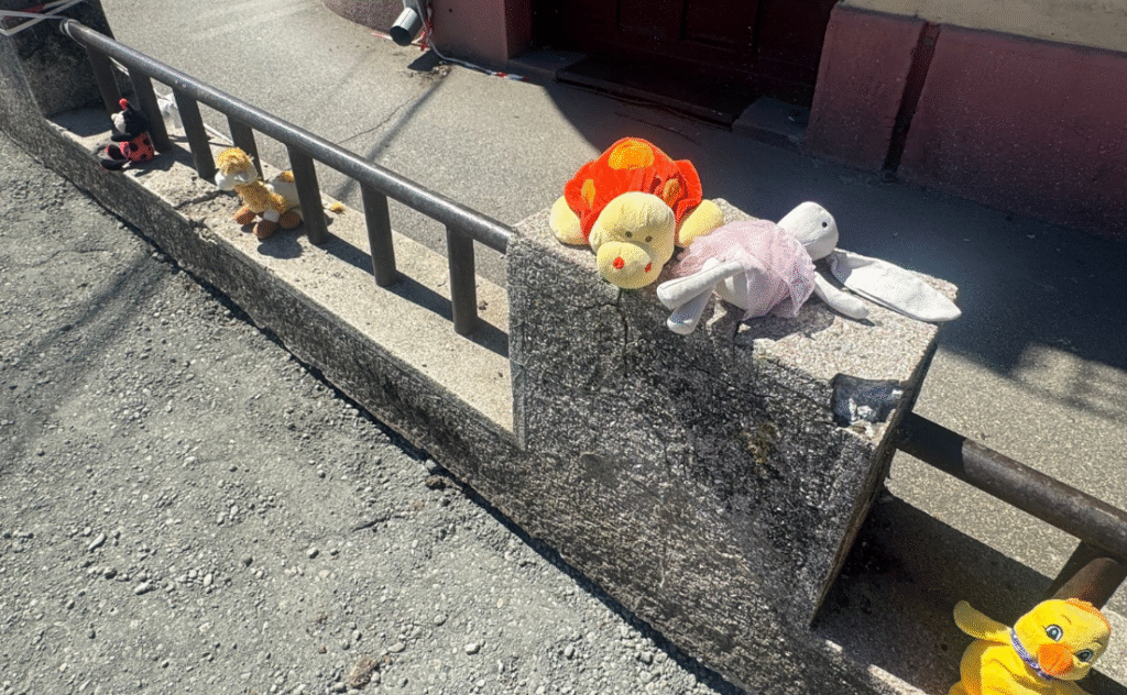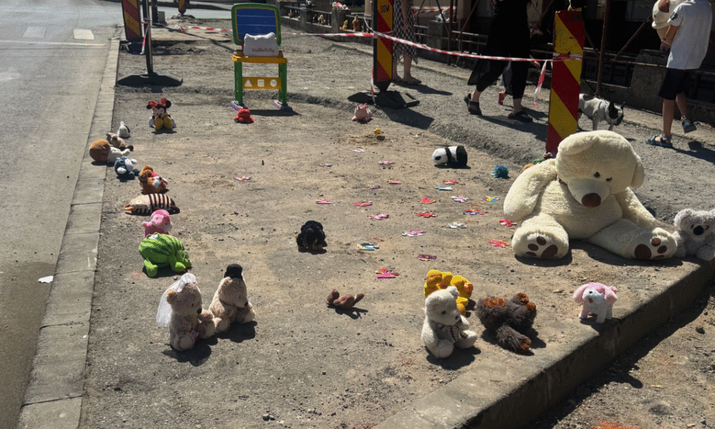 Au recurs la un gest simbolic, acela de a așeza pe trotuar câte o jucărie, pentru a transmite mesajul că cei mici au dreptul la un mediu sigur, în care să crească și să se joace fără teamă.