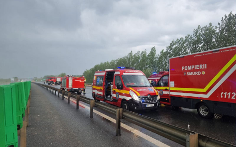 Accident rutier cu victime multiple, în urmă cu puțin timp, pe autostrada A1, unde s-au deplasat, de urgență, șapte ambulanțe SMURD și două ale Serviciului Județean de Urgență.