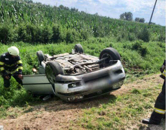 VIDEO O mașină în care se afla o femeie și trei copii s-a răsturnat și a ajuns pe plafon! A fost solicitat și elicopterul SMURD