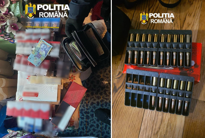 Polițiștii Serviciului Arme, Explozivi și Substanțe Periculoase au avut în vizor 29 de adrese. Au descoperit astfel un arsenal de ame și muniție, dar și trofee, carne de vânat, țigarete și articole pirotehnice.