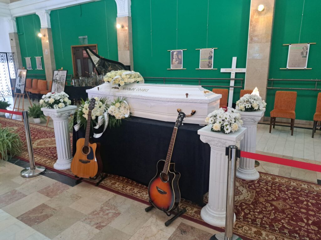 În această dimneaţă, sicriul cu trupul neînsufleţit al legendarului Nicu Covaci a fost depus în foaierul Filarmonicii Banatul din Timişoara.