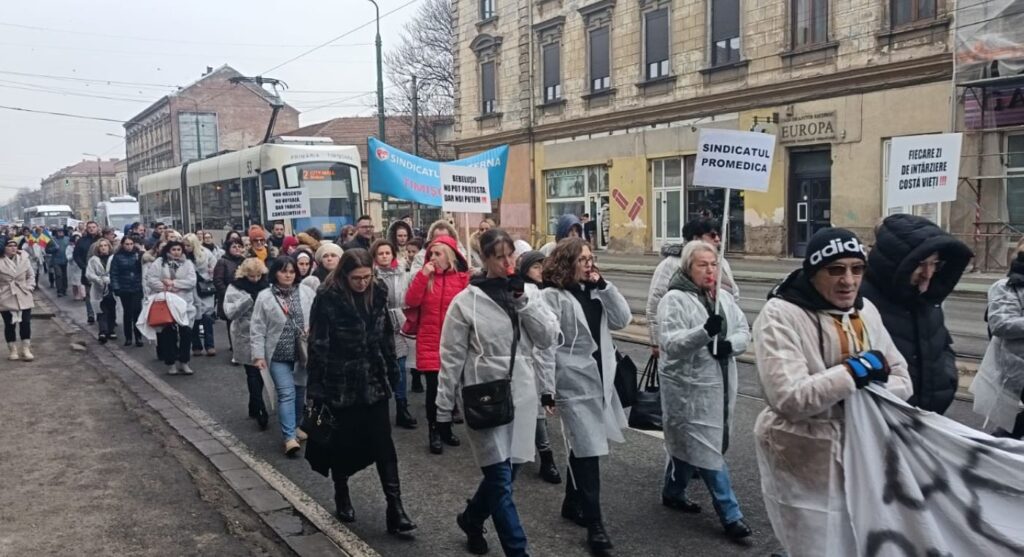 Astăzi, medicii, asistentele, dar și simpli timișoreni îngrijorați de situație, care li s-au alăturat, și-au strigat nemulțumirile în stradă.