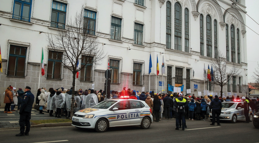După ce au mărșăluit pe străzile orașului, protestatarii au ajuns în fața Primăriei, unde vor manifesta până la ora 16.00.