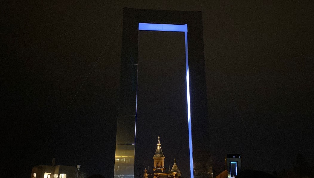 Portalul Revoluției, care are o dimensiune de 15x5x10 metri, va rămâne pe malul Begăi, până pe data de 2 ianuarie 2025.