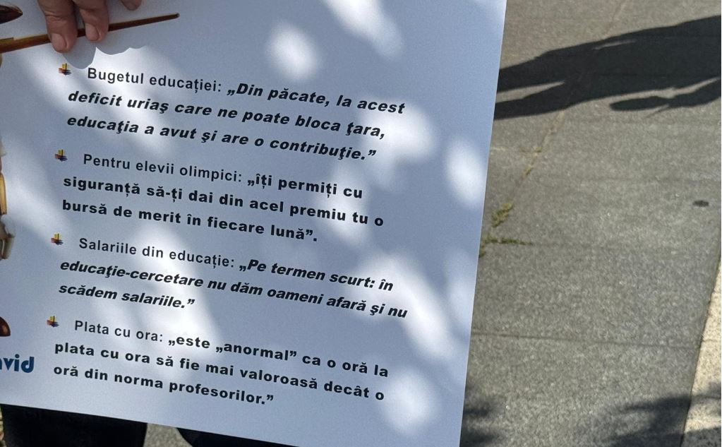 Cu pancarte în mâini, cu diverse mesaje „Educația nu este o cheltuială, ci o investiție” sau „Educația este un drept fundamental, nu un privilegiu”, au scandat lozinci, precum: „Libertate pentru libertate”, „Jos ministrul mincinos” sau „Fără educație moare orice nație”.