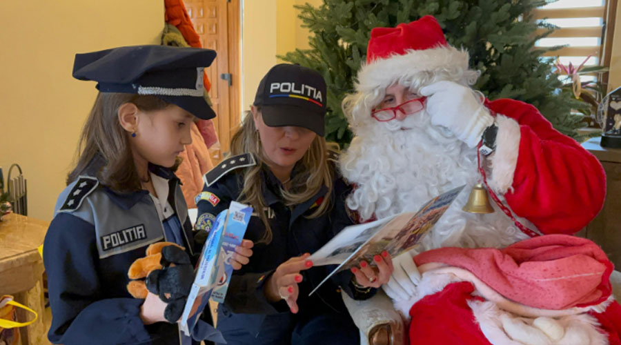 Moș Crăciun, alături de polițiștii Direcției pentru Protecția Animalelor și cei ai Biroului pentru Protecția Animalelor, care au fost transformați în ajutoarele sale, i-au făcut o bucurie de neuitat micuței din Cărpiniș, județul Hunedoara, și au luat-o într-o misiune de patrulare specială.