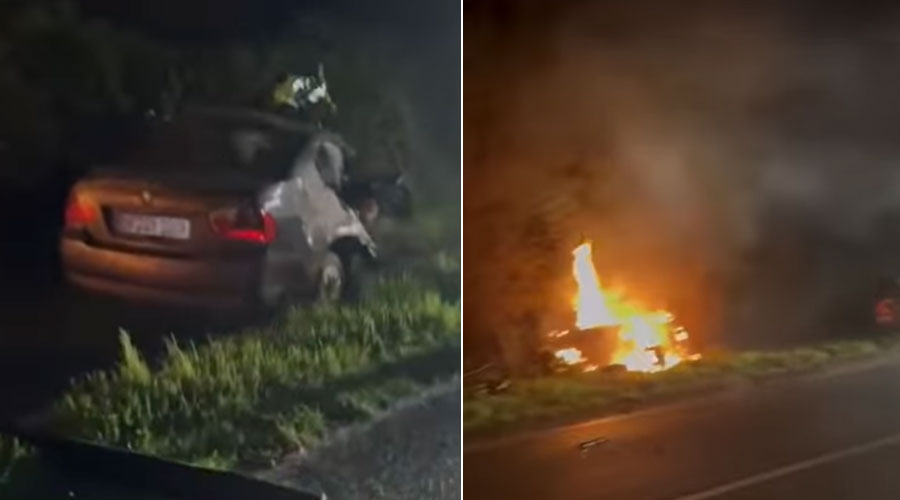 Video: Tragedie, în Vinerea Mare! Un mort și doi răniți, într-un accident violent! Victima decedată a ars în mașina care a luat foc, după impact