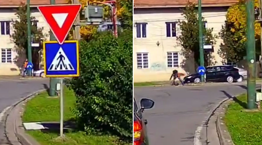 Femeia a coborât repede de la volanul mașinii pentru a verifica starea bărbatului, care, din fericire, nu a fost rănit și nu a avut nevoie de îngrijiri medicale.