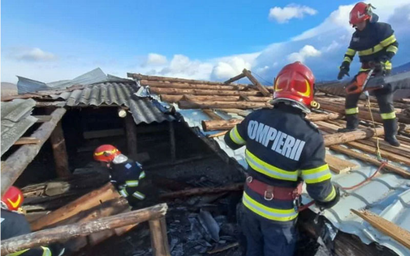 Incendiu de proporții în miez de noapte! Patru ore s-au luptat pompierii cu flăcările ce au cuprins două case