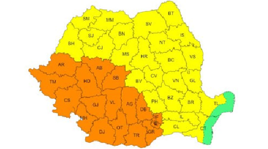În Banat, Oltenia, jumătatea de vest a Munteniei, precum și în sudul Crișanei și sud-vestul Transilvaniei, va fi cod portocaliu.